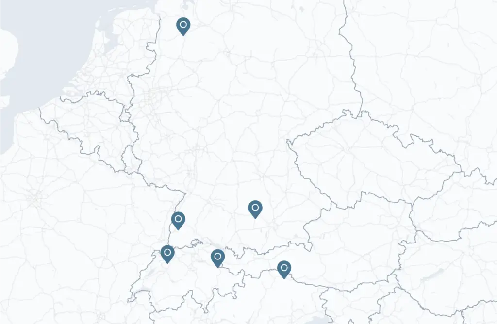 Vous nous trouverez sur un total de sept sites dans trois pays. Avec quatre succursales en Suisse, deux en Allemagne et une en Italie, nous combinons présence régionale et orientation internationale.